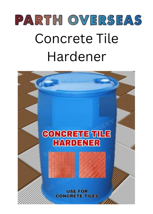 Parth Overseas manufactures premium Tile Hardner that enhances the strength, durability, and wear-resistance of concrete tiles. Formulated to improve the compression strength and resistance to cracking, our Tile Hardner ensures tiles maintain their structural integrity under heavy traffic and harsh weather conditions. It also helps reduce water absorption, making the tiles more resistant to staining and degradation. Easy to use and highly effective, our Tile Hardner is ideal for both interlocking tiles and paver blocks, providing a smooth, high-quality finish. Parth Overseas delivers reliable, cost-effective solutions to help manufacturers produce long-lasting, superior tiles.